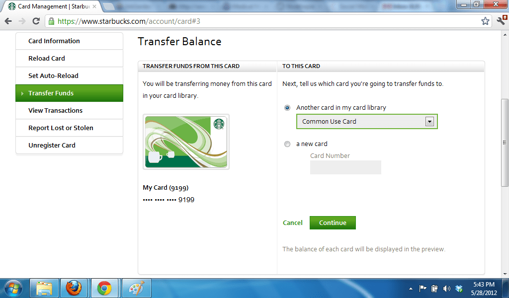Starbucks Gift Card Balance Transfer